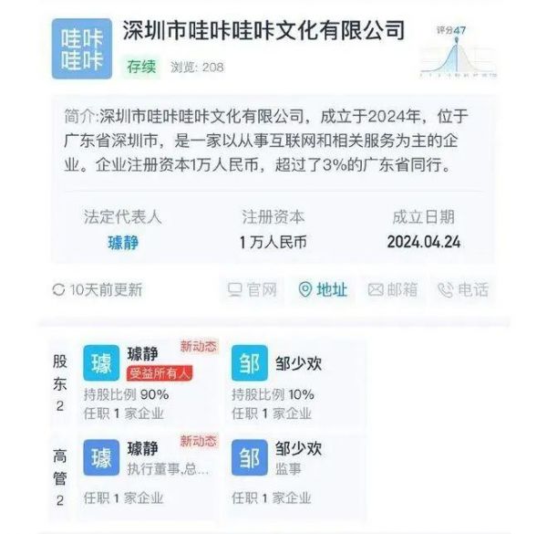 在“秒批”速度离职后,璩静被曝出早在今年4月就注册了公司,经营范围包括日用品销售、家电销售、通讯设备销售、化妆品零售、服装服饰零售、文化娱乐经纪人服务等,并直接出任公司法人与大股东。显然,她是奔着直播带货去的。