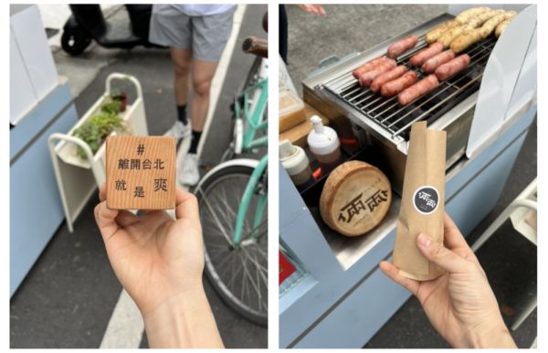 骑车路过一个路边摊,折回去看,是一个年轻女生在经营的大肠包小肠,她用自制的意大利青酱来配大肠包小肠,意外地很好吃。我见招牌上写着“离开台北就是爽”,于是问起背后的故事:她原本在台北做营销,去年10月才来,老公目前还在台北做建筑,她先过来了,因为“我从小在台北长大,我老公让我先来体验一下,觉得如果我可以适应,那么就可以全家搬过来”。