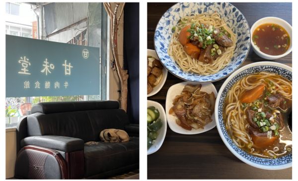 甘味堂的门店极低调,看不出什么故事,连他因养病回池上都是我在另一家咖啡馆的印刷物上读到的,店里毫无宣传痕迹,老板本人沉默朴实。店铺不精美,甚至有些混乱,破破烂烂关上的自动门,不推开就发现不了是在营业。门口靠边有一张破沙发,皮开肉绽,上面躺着一只声带受损的灰色田园犬,不动如山地睡觉。但牛肉面实在美味,甚至比我在台北和云林吃的名气更大的牛肉面要更加好吃,于是根本没有精力去注意面条到底是不是由大米制成的。