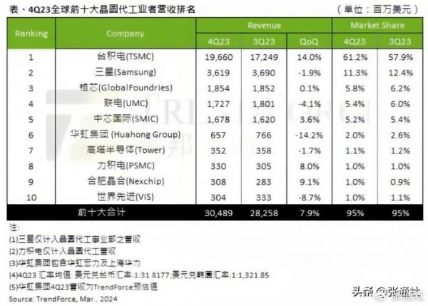 中芯国际首次超越,成全球第二大代工厂,仅次于台积电