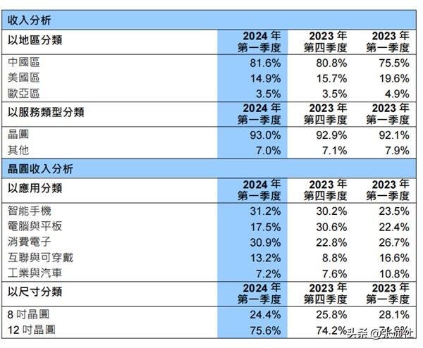 如中芯国际在财报中所说,公司月产能由2023年第四季的805,500片8吋晶圆约当量增加至2024年第一季的814,500片8吋晶圆约当量。其中,智能手机应用贡献了公司最大的营收来源,营收贡献为31.2%。