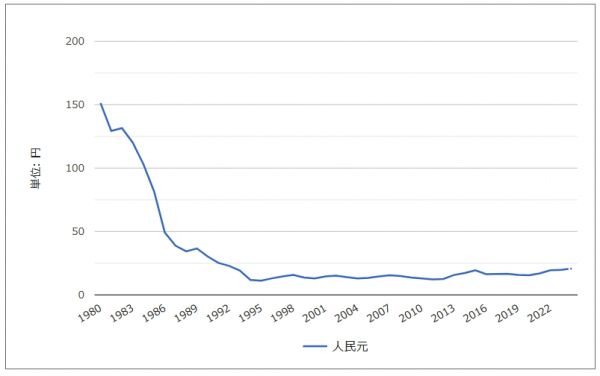 从日元兑人民币汇率近二十年的走势来看,日元兑人民币贬值有“棘轮效应”,也就是说贬值容易,但是升值很难。