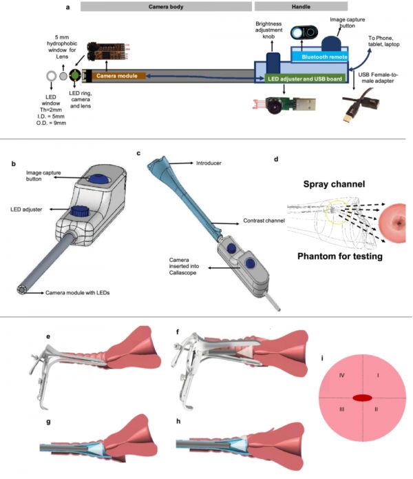 上面的两种方法依然需要把阴道壁扩张开,以便医生直接观察宫颈和进行操作。麻省理工学院的研究者绕过扩张过程,设计了一种装有200万像素摄像头的装置,让人们可以通过显示在屏幕上的视频看到宫颈。