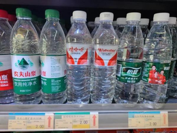▲(北京一路边超市的货架。图源/市界)5月10日,在北京朝阳区的一家路边小超市里,「市界」发现,550ml的农夫山泉纯净水、596ml的娃哈哈纯净水、555ml的怡宝纯净水,已经并肩站在了货架上。在这家小超市,三者的零售价均为2元。旁边还有一个老面孔——零售2元的农夫山泉天然水。