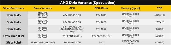 AMD将在桌面、笔记本上推出多款基于Zen5架构的新一代锐龙,其中的Strix Halo定位顶级移动平台,规格拉得非常高,功耗也放得非常高,竟然能达到120W。