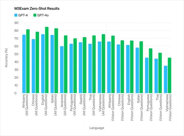 而与现有模型相比,GPT-4o 在视觉和音频理解方面表现尤为出色。