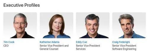 在苹果目前的管理层中,核心高管有12名,除了CEO库克和COO杰夫•威廉姆斯,还有10名高级副总裁,他们都是各个主要部门的负责人,掌控财务、零售、硬件工程、软件工程、法务等。