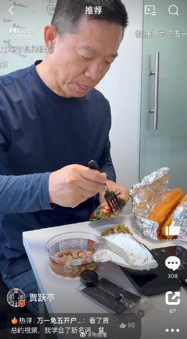贾跃亭美国生活曝光,工作加班到半夜,吃咸菜油条。网友:个人IP打造开始了?[doge]