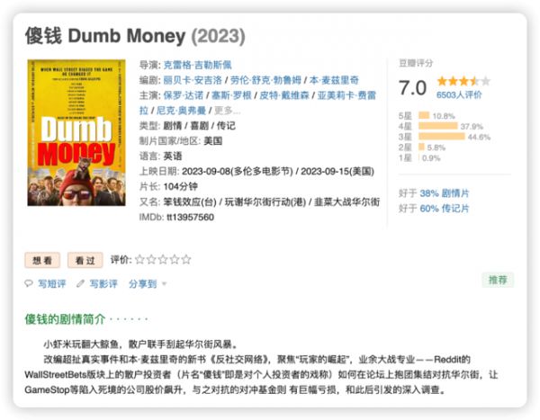 而Keith功不可没。这场散户与机构的世纪轧空大战,被散户们誉为“大卫与歌利亚之战”,还被改编成了电影《傻钱》。