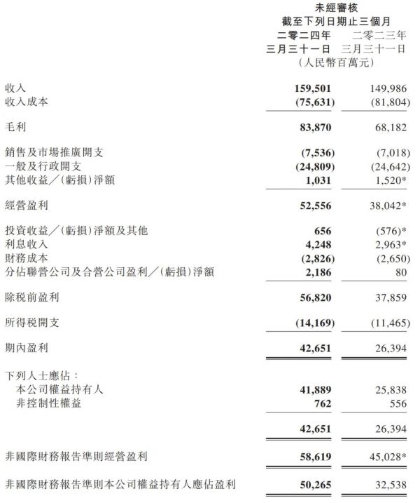 按非国际财务报告准则,腾讯2024年第一季度期内盈利为513亿元(72亿美元),同比增长54%;净利润率由上年同期的22%上升至32%;期内公司权益持有人应占盈利为502.7亿元(71亿美元),同比增长54%。