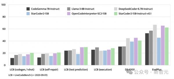 LiveCodeBench专注于评估2023年9月1日之后出现的编码挑战,而StarCoder2-15B-Instruct在该基准测试中取得了最优成绩,并且始终领先于使用GPT-4数据进行微调的OpenCodeInterpreter-SC2-15B