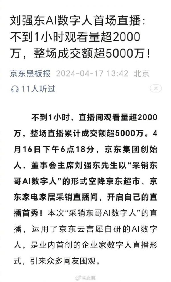 不久前,刘强东AI数字人亮相直播场景,想必许多人都对此印象深刻。