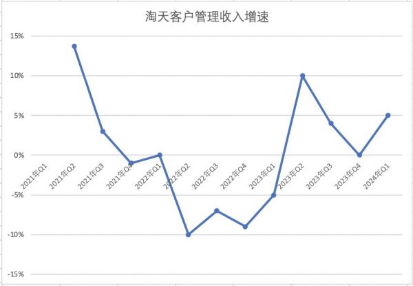 收入和利润情况来看,2024年 Q1,阿里巴巴营收同比增长7%至2218.74亿元,淘天收入同比增长4%至932.16亿元。其中客户管理收入(来自商家的广告费、佣金)同比增长5%至635.74亿元,增幅创下三个季度以来新高。