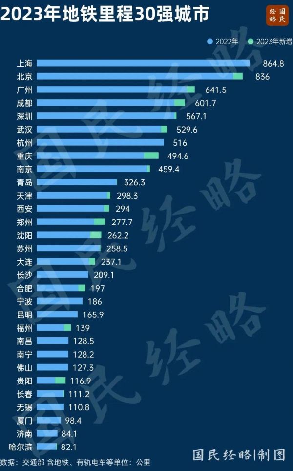 与之对比,地铁以城市内部的交通互联为主,并向外延伸到都市圈范围,半径多在50公里以内,即使是跨市地铁,一般也不会超过100公里。