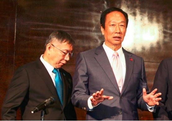 鸿海集团郭台铭(右)与柯文哲、賴佩霞