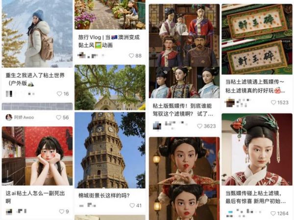 微博、小红书等社交平台上都布满了网友生成的五花八门的黏土风图片。个人自拍、旅游打卡、各大城市街景等都掉进了黏土世界,甚至《甄嬛传》等电视剧也难逃“魔爪”。