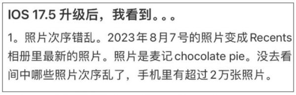 记者在多个社交平台上查询发现,许多用户遇到类似问题,有人更新系统后相册里多了很多奇怪的图,有人则发现照片顺序错乱……