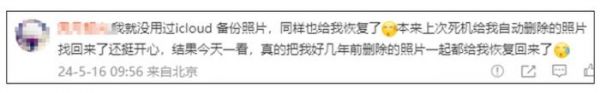 2022年,就曾有一位苹果用户发帖称,自己不小心将照片删除了,联系客服提供ID,几分钟时间,几百张照片失而复得。
