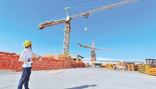 5月13日下午,中建机械有限公司技术员正在通过身上的智能穿戴设备远程操控塔吊。 河北日报记者 刘英摄河北日报记者 刘英