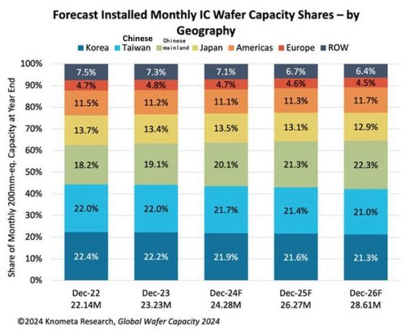时至今日,全球半导体产业已经历了翻天覆地的变化,尤其是中国大陆在这个领域的发展速度更是令人瞩目。根据半导体研究机构Knometa Research的最新报告,我们不难发现一个引人注目的趋势:预计到2026年,中国大陆的IC晶圆厂产能将激增至全球第一,这是一个具有里程碑意义的发展。