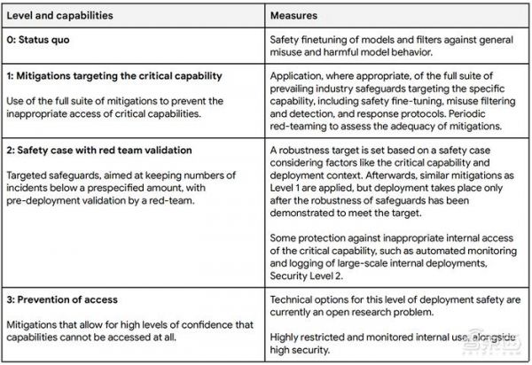 对于每一类缓解措施,谷歌DeepMind都制定了若干级别,使其能够根据所构成的风险调整措施的稳健性。