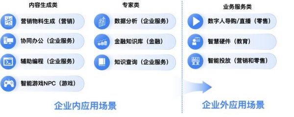 InfoQ 研究中心根据过往研究成果和积累,对于现有的应用场景进行了分析判断。选择出了企业内外部应用场景中的十大潜力发展场景。企业内部应用中,内容生成类包含营销中的物料生成、企业服务中的协同办公和辅助编程、游戏场景中的智能游戏 NPC;专家类包含企业服务中的数据分析和知识查询,以及金融场景中的知识库。对完场景中包含零售场景中的数字人导购 / 直播、教育中的智慧硬件,以及营销和零售场景中的智能投放。
