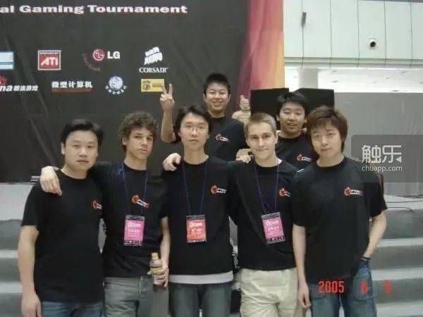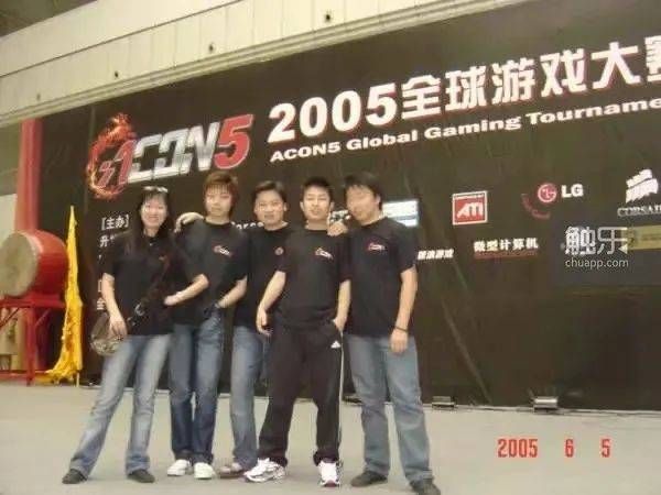 2005年,邱乐(左二)和他的“老年团”在ACON5总决赛现场