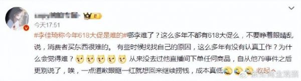 李佳琦叹今年618难,遭网友群嘲:哪李难了
