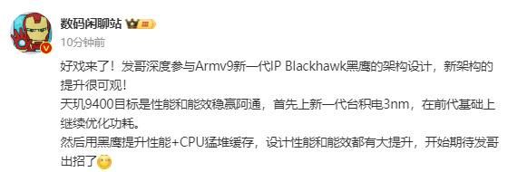 天玑9400再曝:联发科参与黑鹰架构设计!性能、能效全面升级
