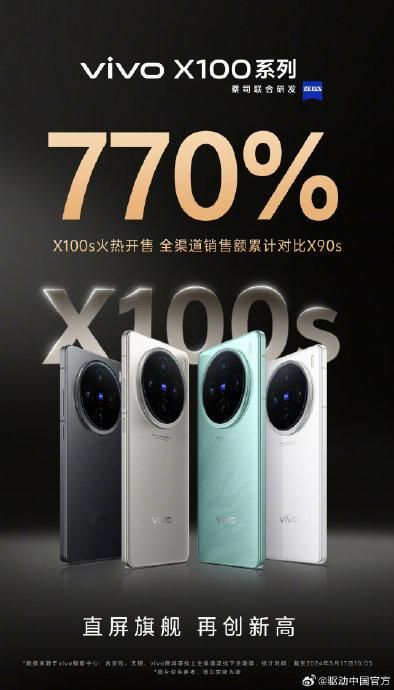 直屏旗舰,再创新高,vivo X100s火热开售,全渠道销售额累计对比X90s达770%