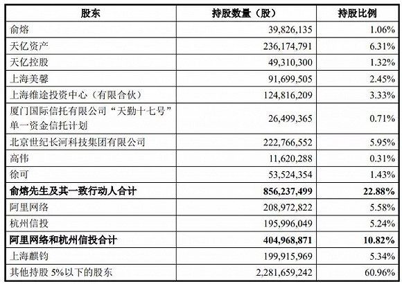 由于阿里网络为杭州信投的控股股东,两者构成一致行动人关系。因此,随着股份转让完成,阿里方面在付出了高达48.64亿元的对价后,将手握美年健康10.82%的股份,一跃成为美年健康第二大股东。天亿资产仍然为公司控股股东,俞熔则仍然为公司实控人。