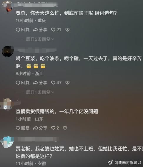 老贾最近分享了他在美国生活的片段,有通宵工作的勤劳,也有喝豆浆吃油条的朴素,说不定后面还能看到老贾吃涪陵榨菜、吃老干妈就馒头,吃大葱啃面包,吃大蒜配咖啡这样“接地气”又有创意的生活片段……