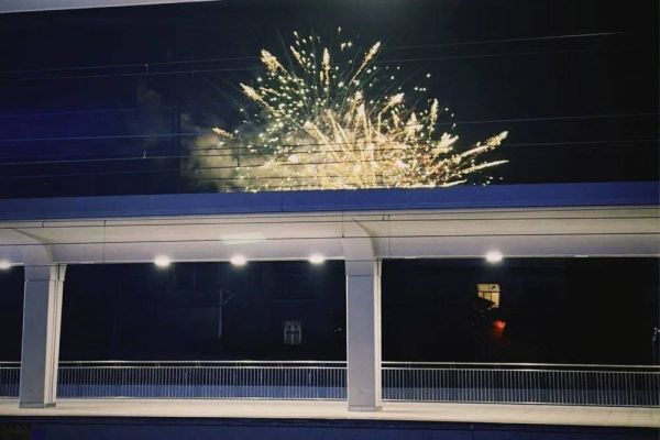 今年除夕,连续上班的第五个除夕,对面居民在放烟火