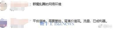 有网友发表评论,“平台造神,需要管控,背离价值观。流量,已成利器”。
