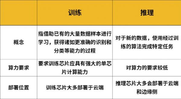 训练任务对服务器算力要求较高,需要训练型服务器提供高密度算力支持;推理任务则是利用训练后的模型提供服务,对算力无较高要求。