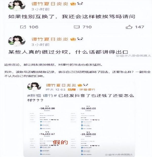还有人做了一个微博账号,假冒谭竹,晒出还款截图。