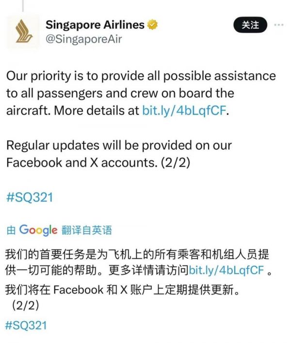 随后,新加坡航空在社交媒体上确认了有旅客死亡,并承诺将为飞机上的旅客和机组提供一切可能的帮助: