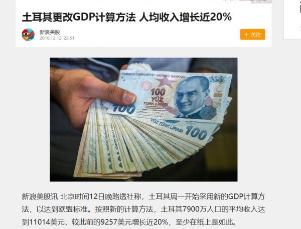 土耳其修改GDP算法的报道 图源:新浪网