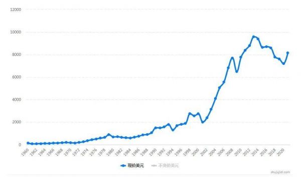 1960~2020年土耳其的GDP走势