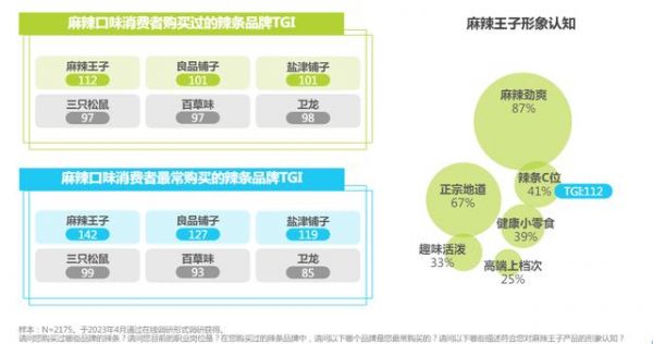 这意味着品牌增长需要抢占消费者心智,抓住“人心红利”。而根据艾瑞咨询的研究,消费者对麻辣王子品牌形象认知中,大部分调研对象认可“麻辣劲爽”和“正宗地道”这两大关键词。