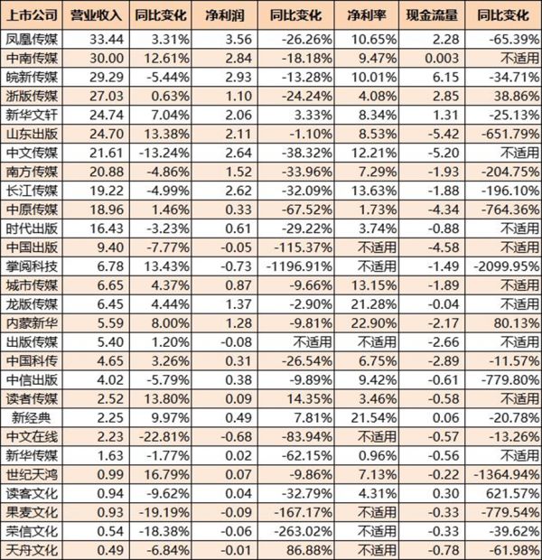 图 | 2024年第一季度出版业上市公司营收情况(单位:亿元),来源:中金易云2024年一季度图书市场报告