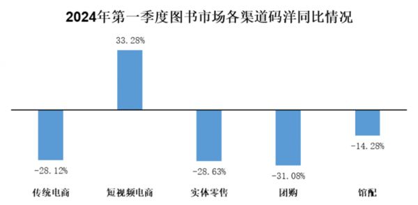 在中金易云2024年一季度图书市场报告中,有一个数据格外亮眼:短视频电商,是唯一一个实现码洋同比增量的渠道。