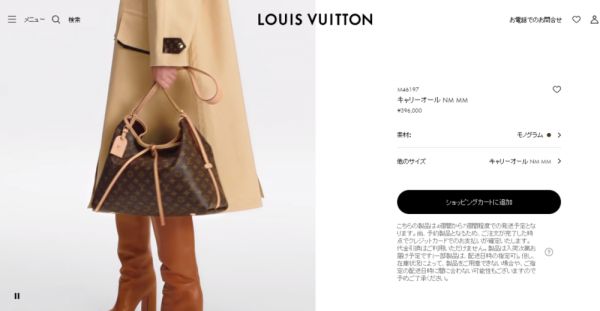 日元汇率最低时,Carryall中号手袋的日本定价约为国内的七五折。(图/LV日本官网)