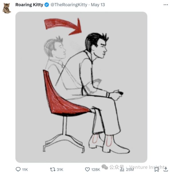 当时这件事情闹得实在太大,到2021年3月份,Keith Gill甚至被传唤到国会作证,解释自己是否有内幕交易、操纵市场等问题。自那以后,Keith Gill沉寂了大约3年,直到最近,他在推特上重新回归: