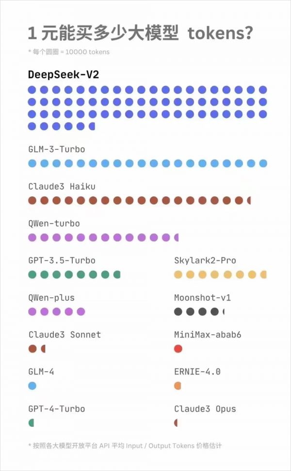 5月6日,DeepSeek v2发布,32K上下文,每百万Token价格:输入1元,输出2元。
