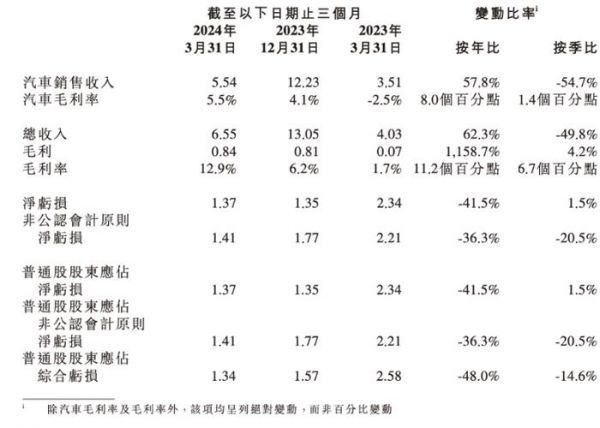今年一季度,小鹏实现营收65.5亿元,同比增长62.3%,毛利率12.9%,其中汽车销售毛利率5.5%,一季度净亏损13.7亿元。
