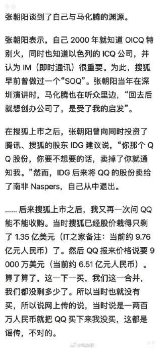 张朝阳称两次错过腾讯,QQ百万贱卖给搜狐是谣传,曾收购报价 9000万美元