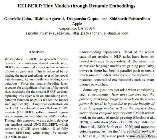 但这种策略显然只能解决了当下的燃眉之急,随着端侧大模型参数规模的不断增长,解决其体积方面的问题也同样重要。为此苹果还创建了一套新的机制,在将大模型压缩到更小体积的同时,还降低其对于性能的影响,例如用一定的延迟和约4%的性能损失为代价,将谷歌Bert模型缩小到1.2MB、体积降低15倍。