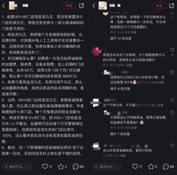 而根据小红书上一位略懂财务的咖啡店店主的分析,库迪这一说法没有考虑折旧摊销,并且只披露现金流为正,却未披露多少门店利润为正,“表明很大一部分库迪咖啡的门店是亏损的”。
