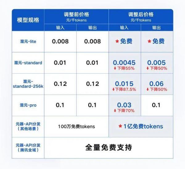腾讯云宣布,其主力模型之一混元-lite模型的价格从0.008元/千tokens调整为全面免费,同时,API输入输出总长度计划从目前的4k升级到256k。